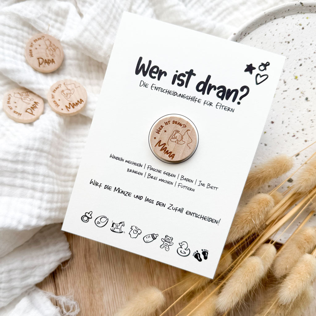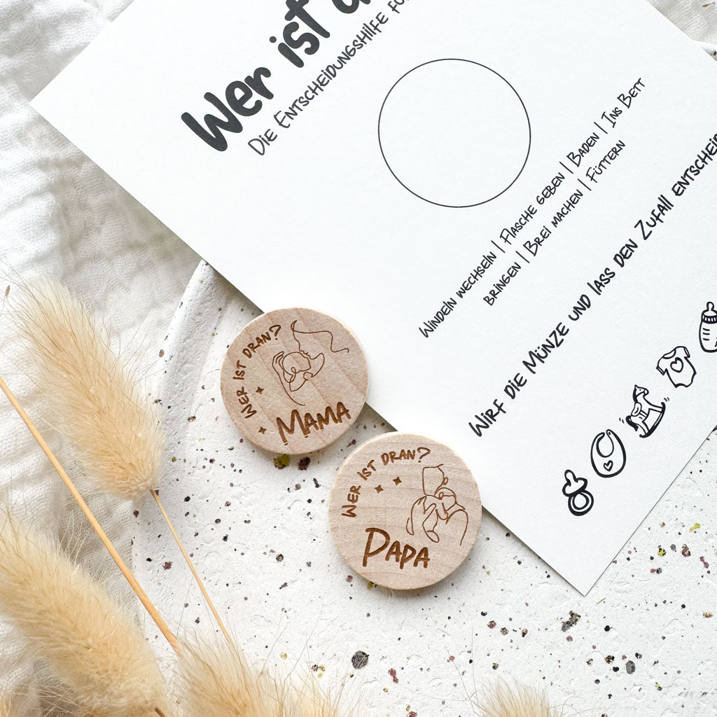 Die Entscheidungsmünze sorgt dafür, dass Streitigkeiten der Vergangenheit angehören – ein kurzer Wurf entscheidet fair, ob Mama oder Papa dran ist.