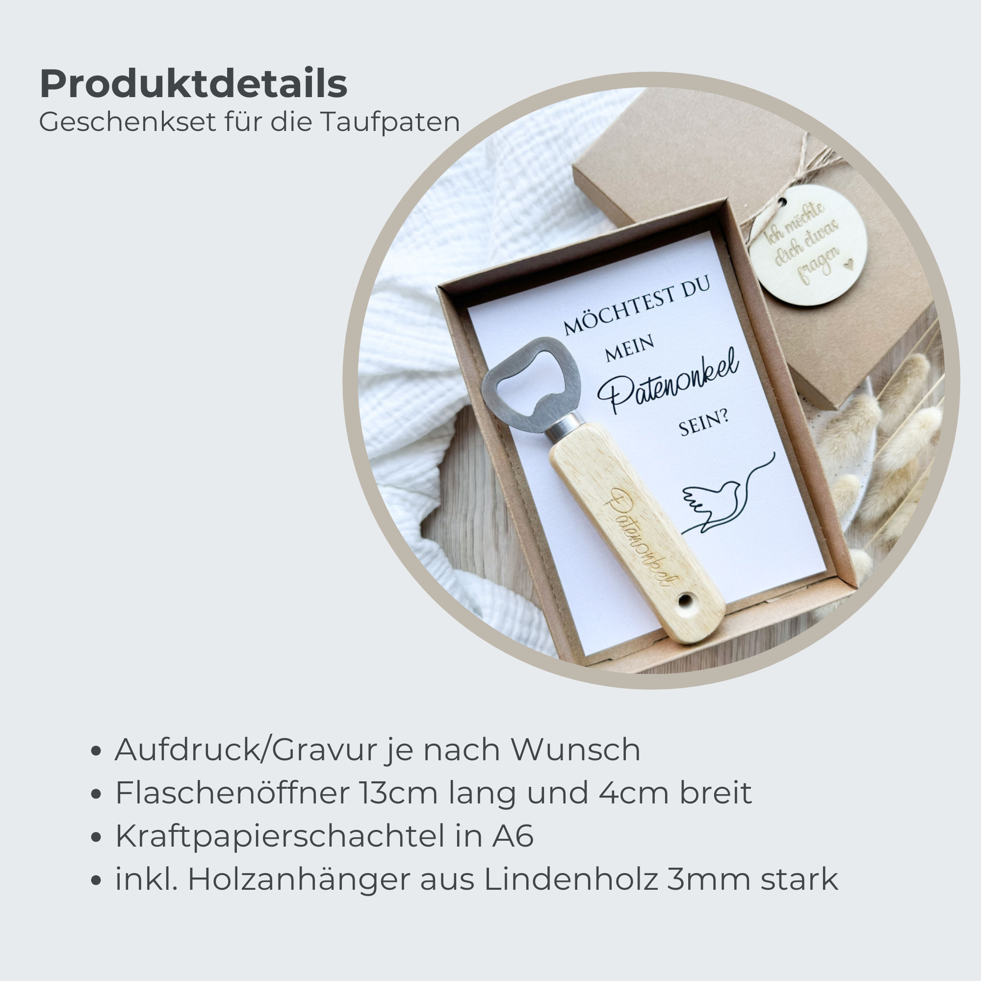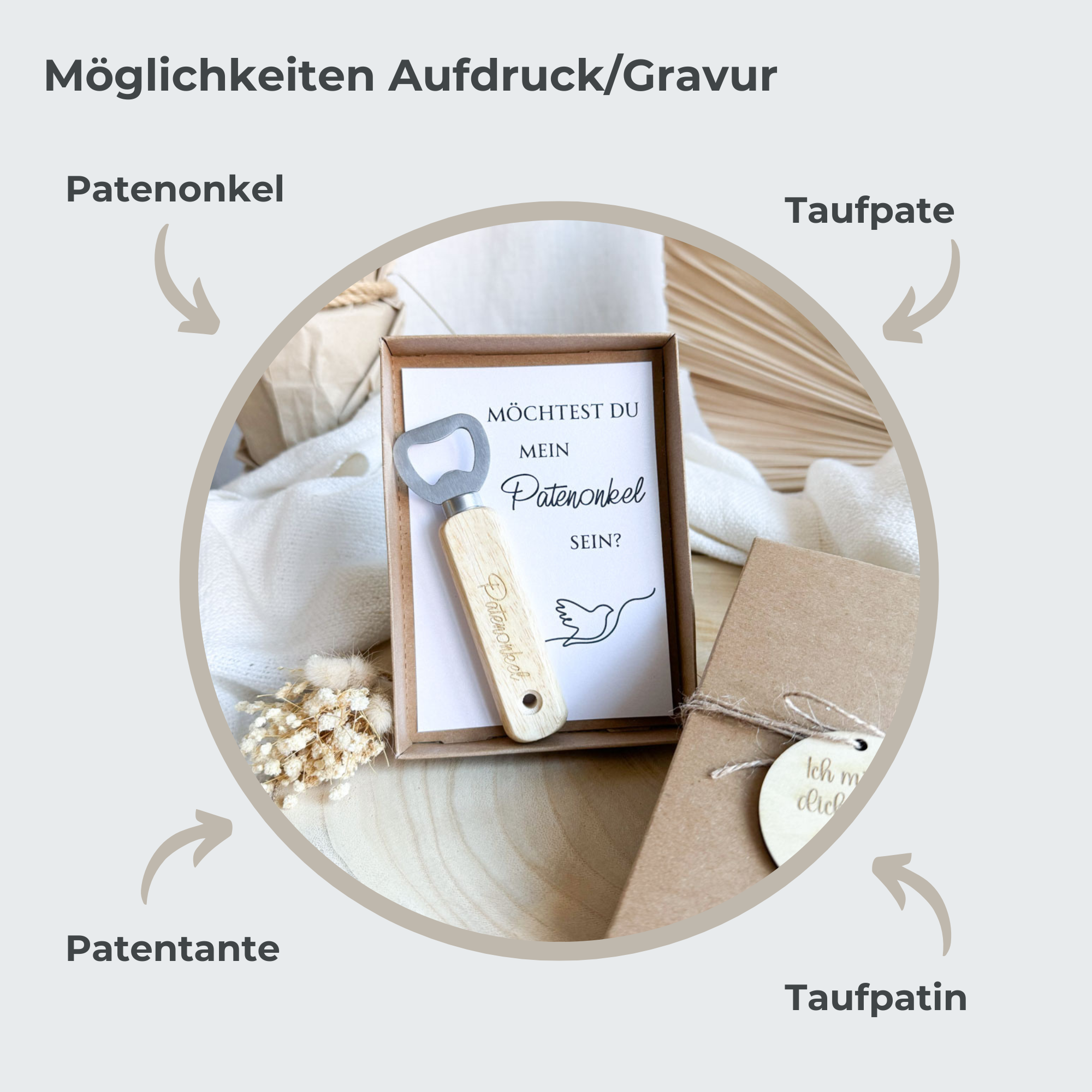 Ob als originelles Geschenk für den Patenonkel, die Patentante oder die Taufpatin – dieser Flaschenöffner verbindet Emotion und Praktikabilität und wird garantiert für strahlende Gesichter sorgen ✨.